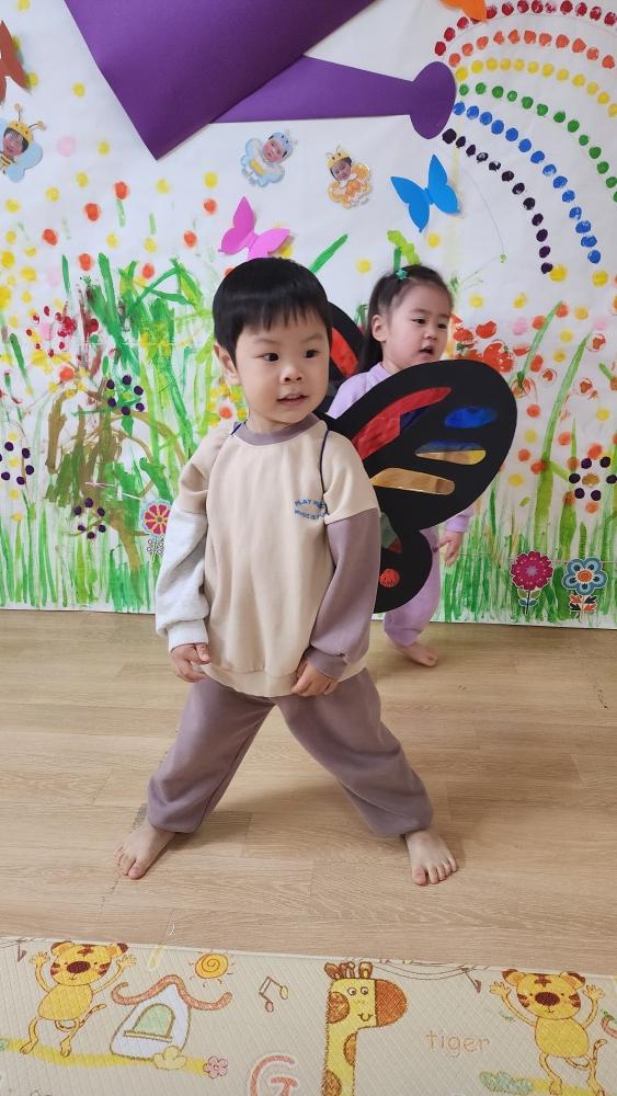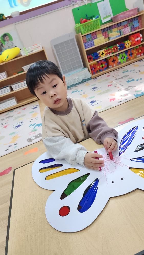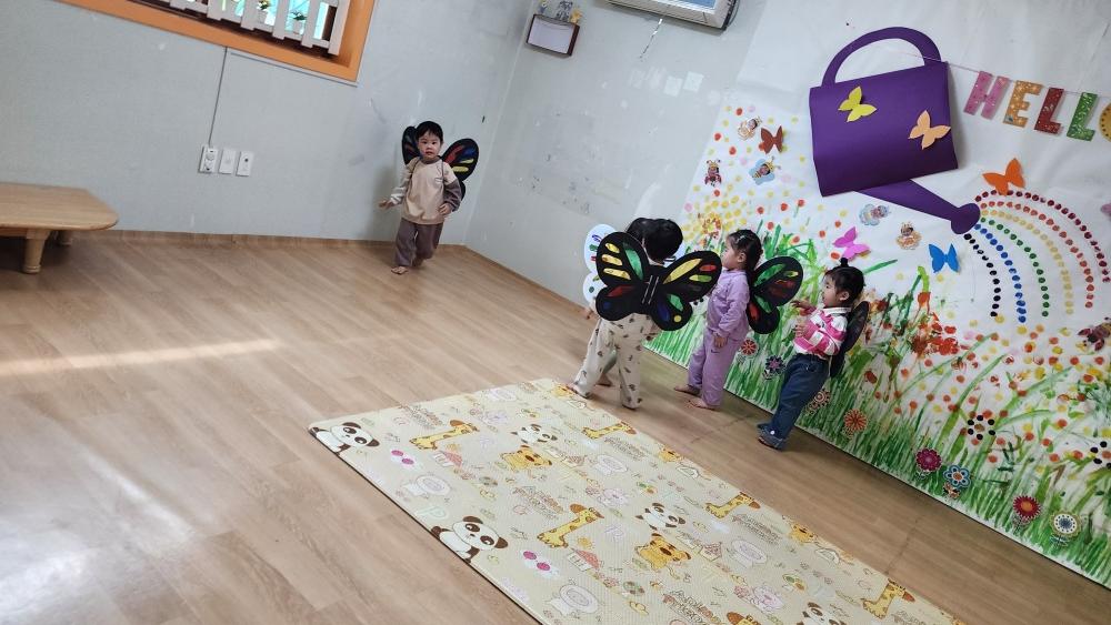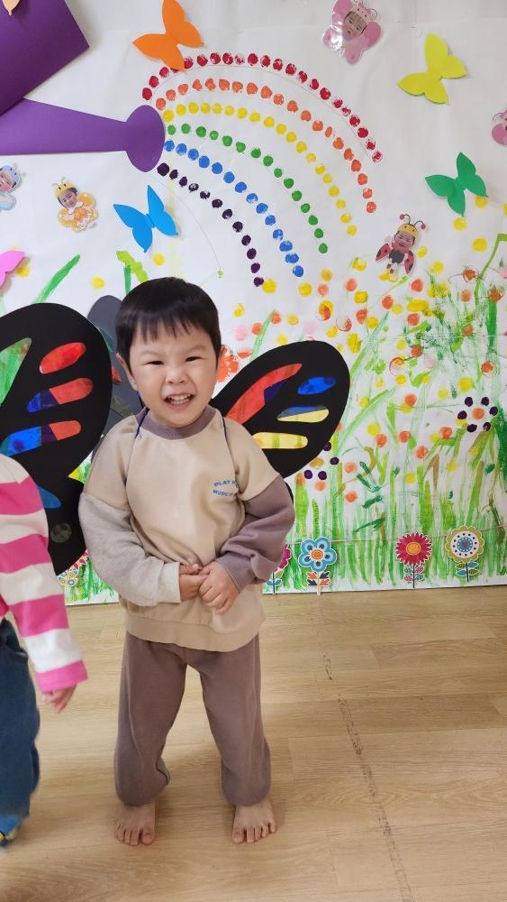 오늘 어린이 집에서 나비 날개 만들고 놀았어.
