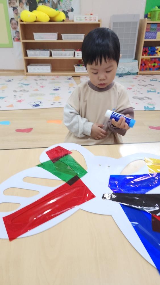 정성스럽게 셀로판지도 붙이고 색칠도 해서