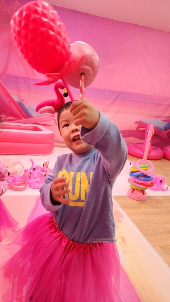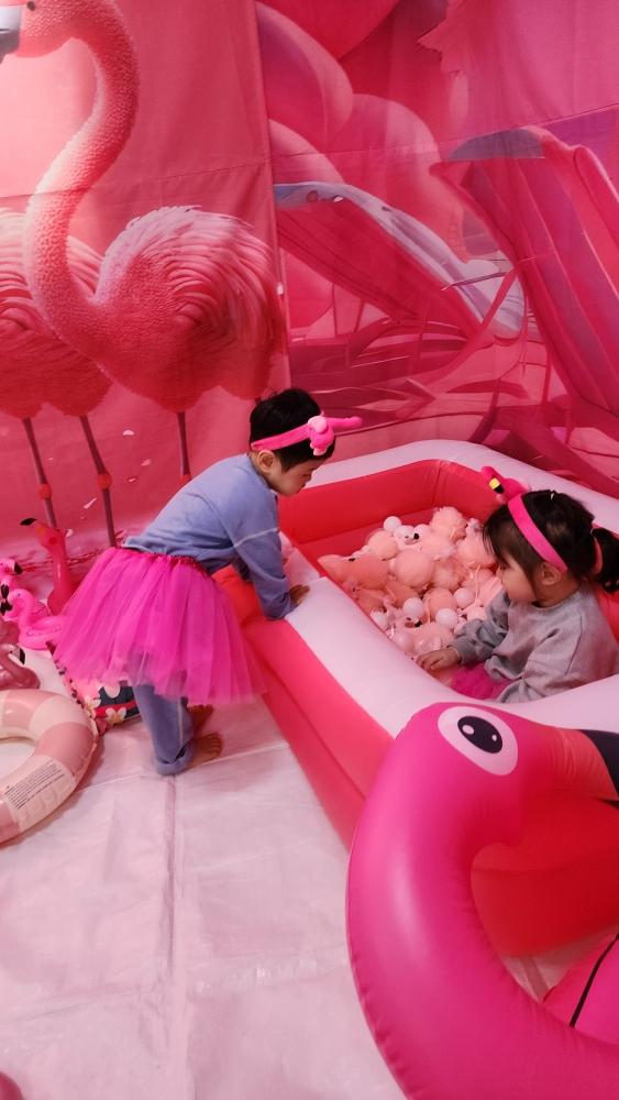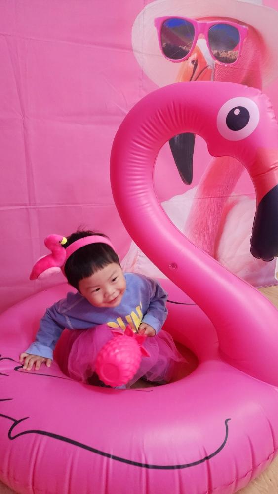 플라밍고 옷에 그림에 튜브까지 하고