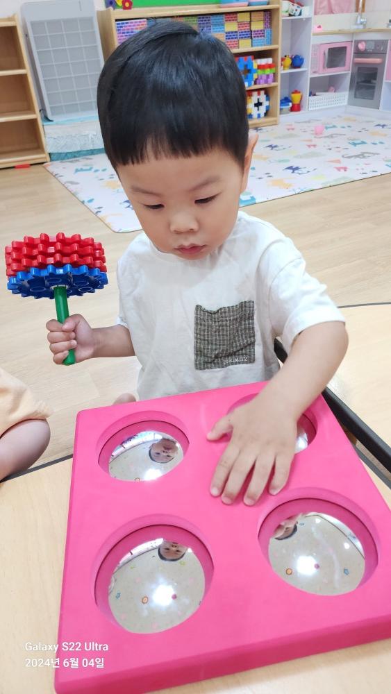 그리고 거울 보면서 거울놀이도 했어.
