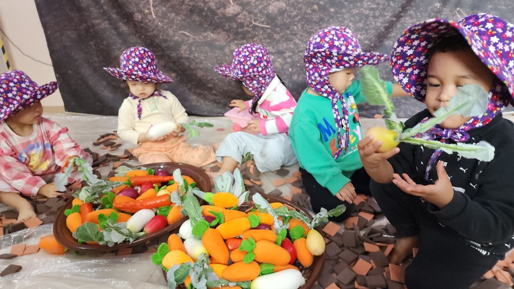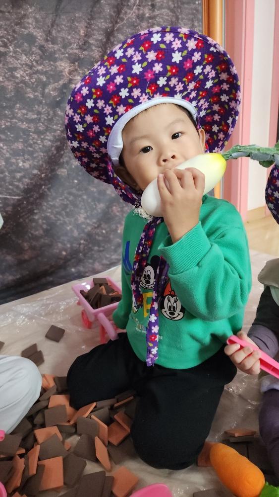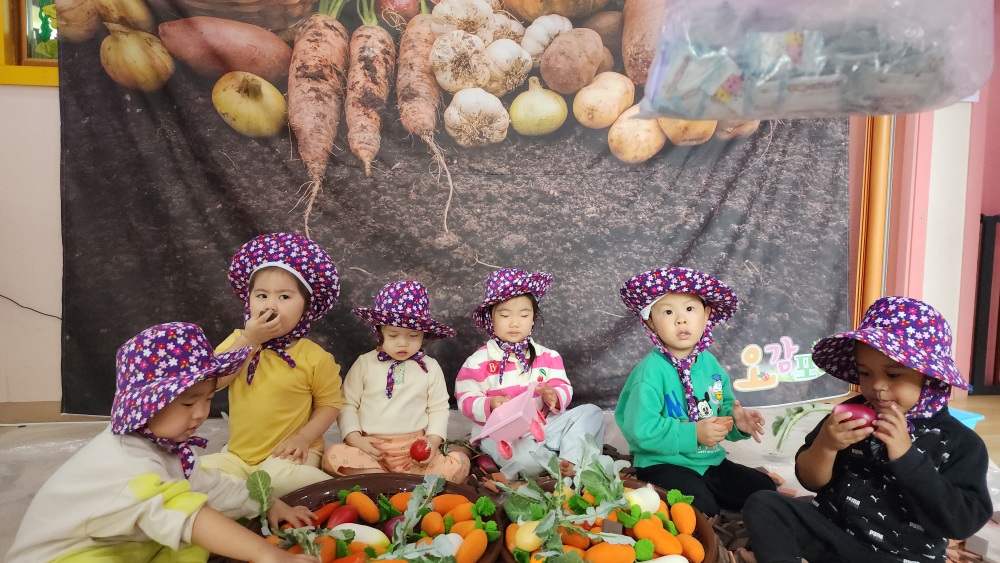 친구들과 힘을 합쳐 야채들을 모으고 놀았어.