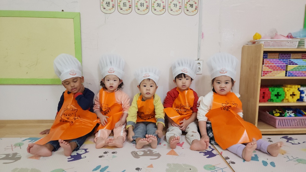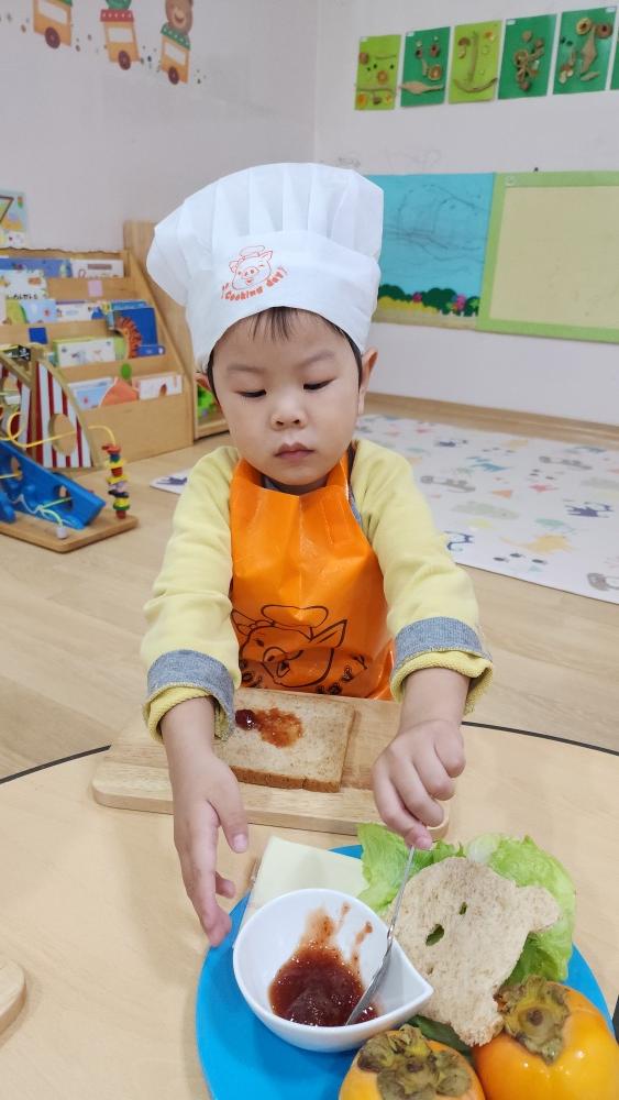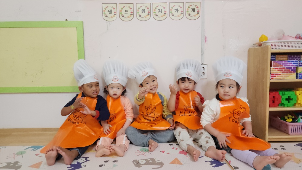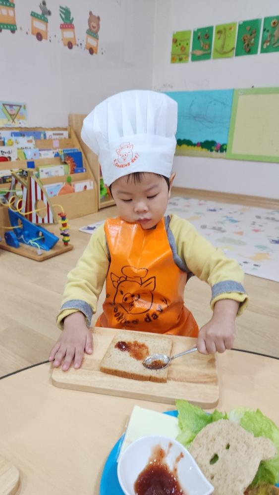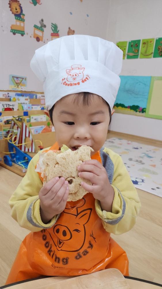 오늘 어린이 집에서 식빵으로 샌드위치 만들었어.