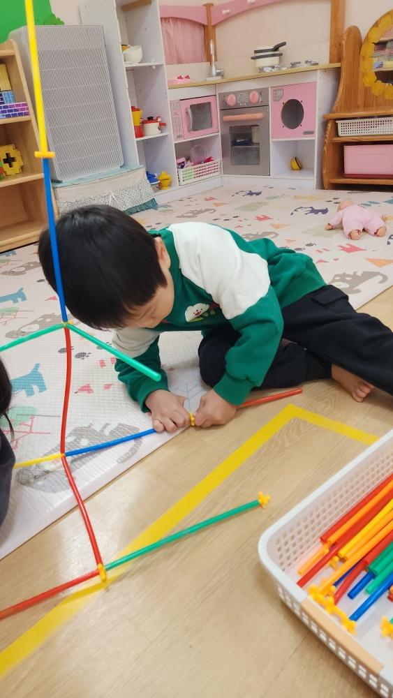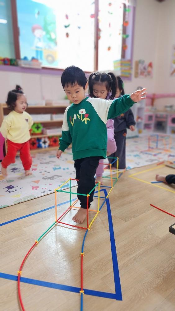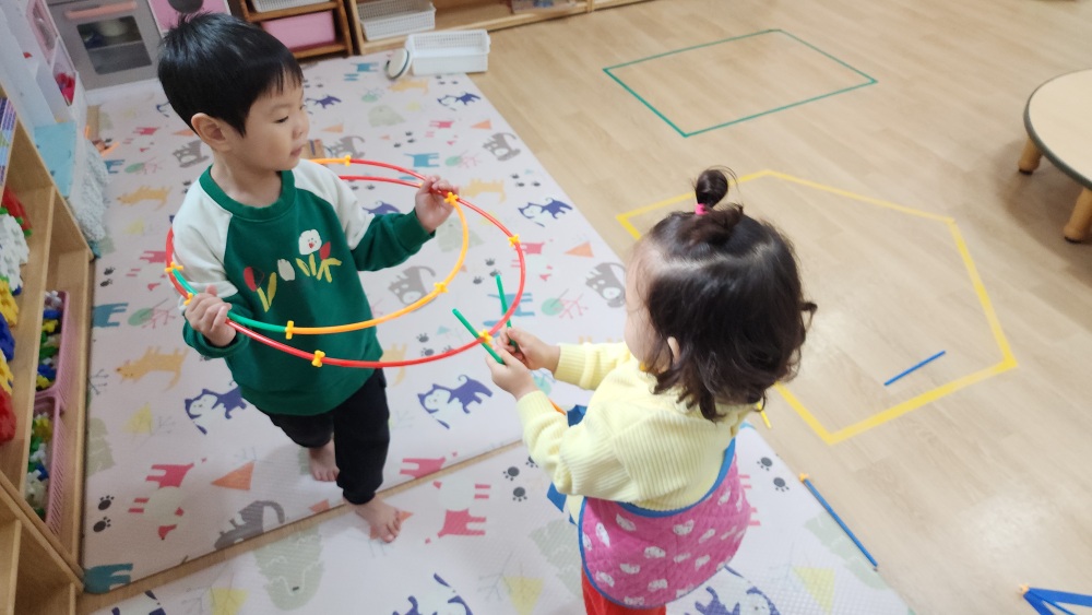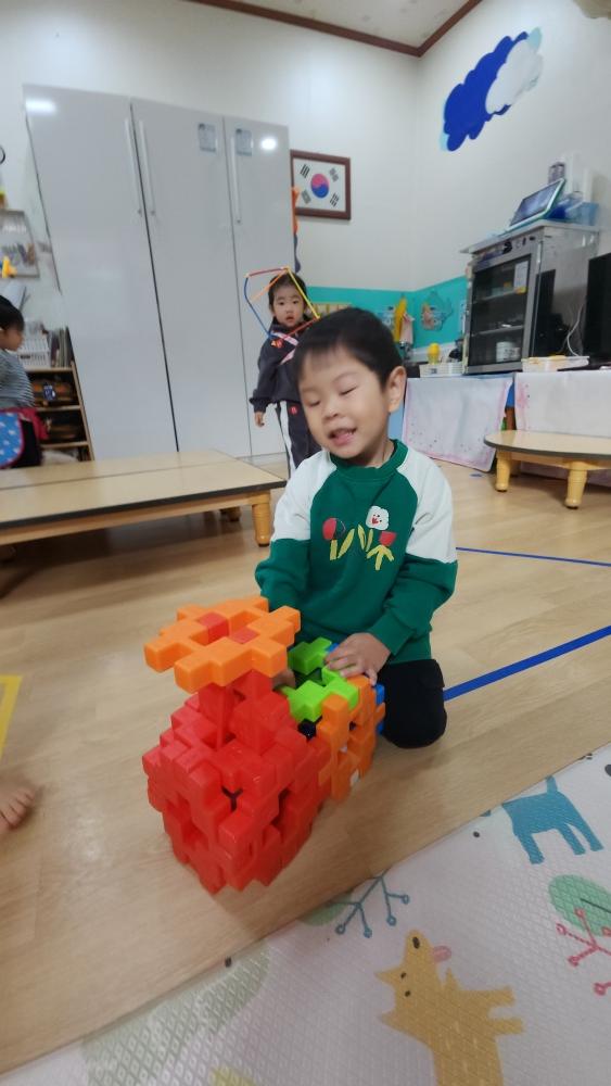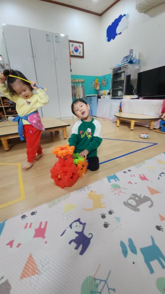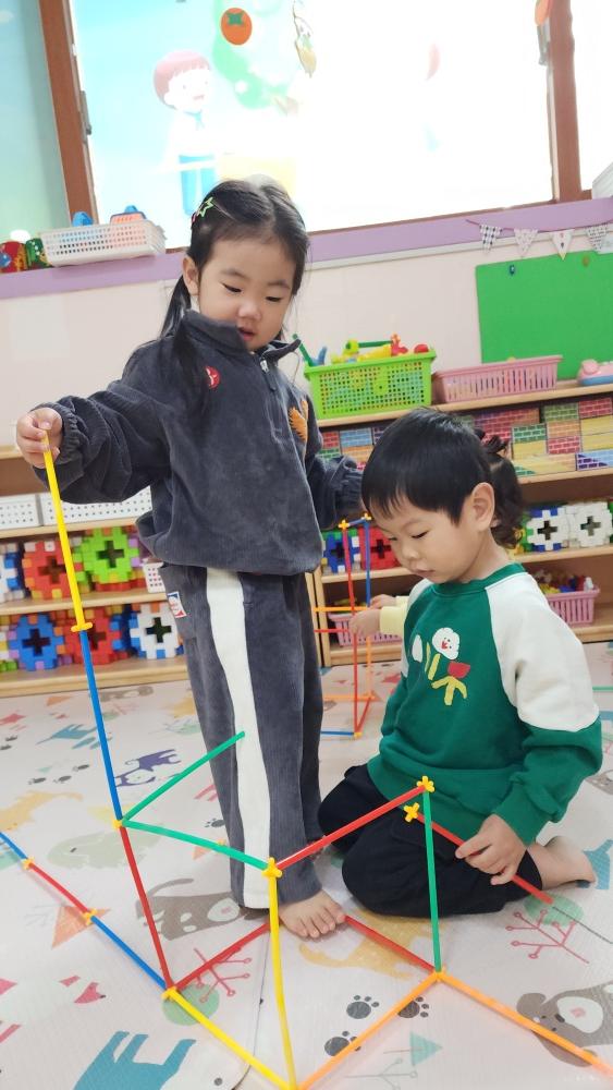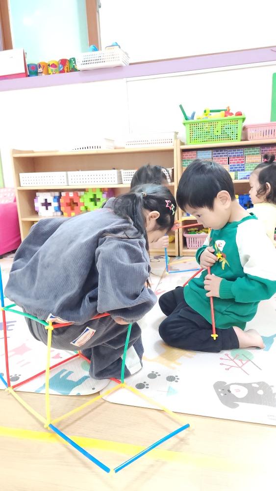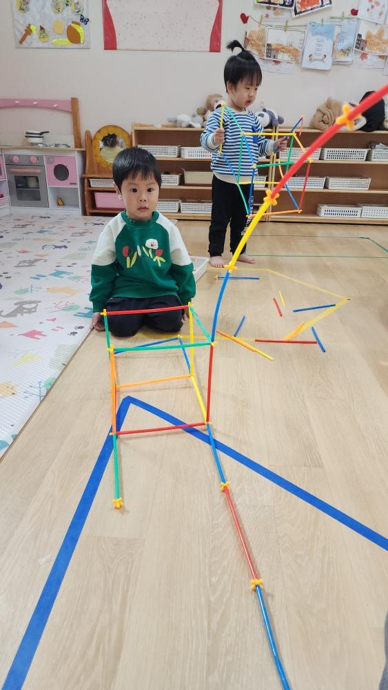막대 블록 가지고 여러 가지 모양 만들어서 친구들과 나갔어.