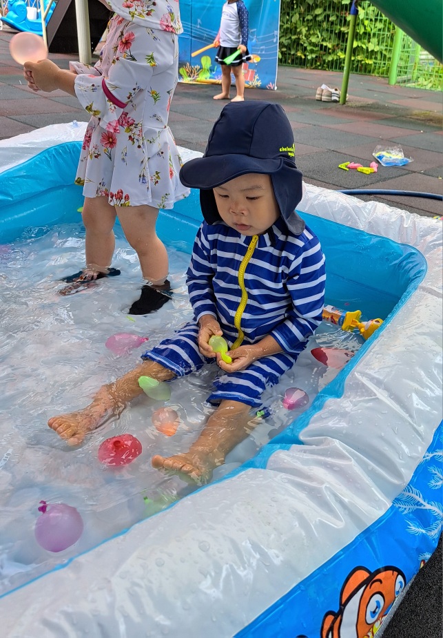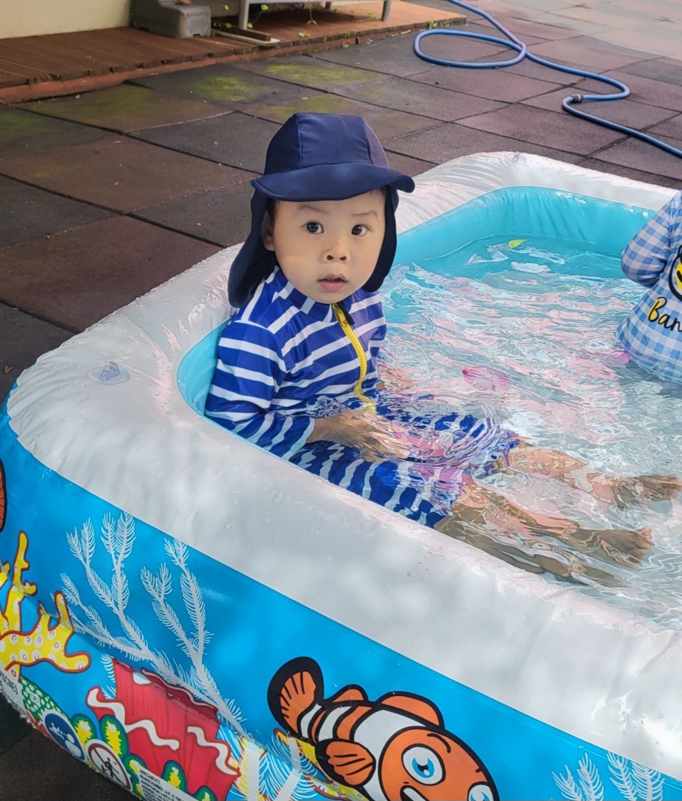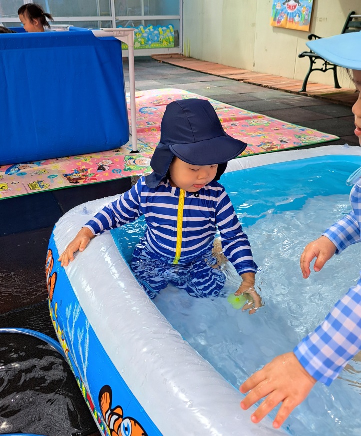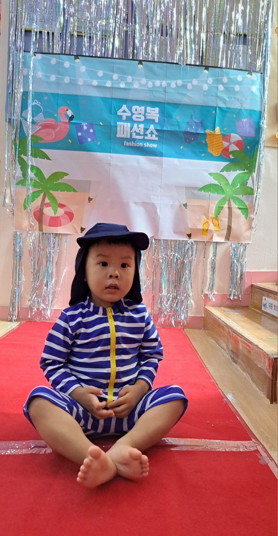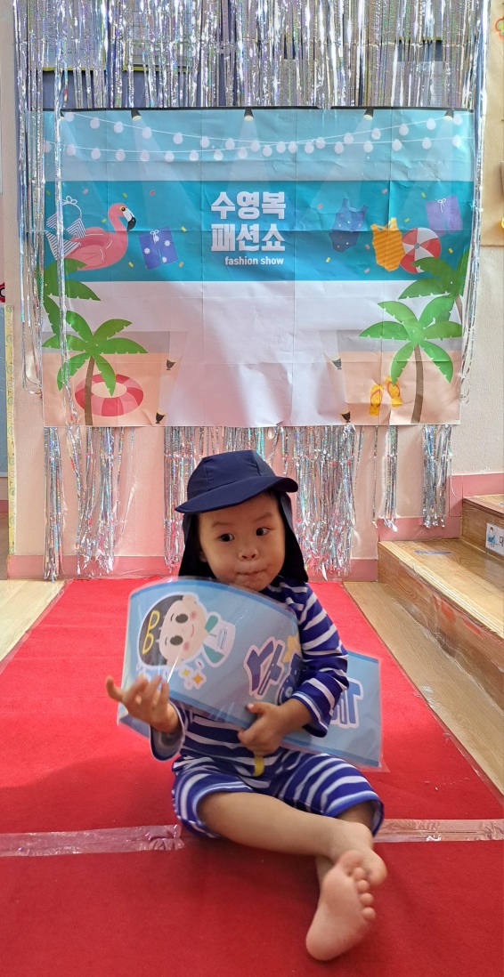 오늘 어린이 집에서 수영복 입고 패션쇼 하고