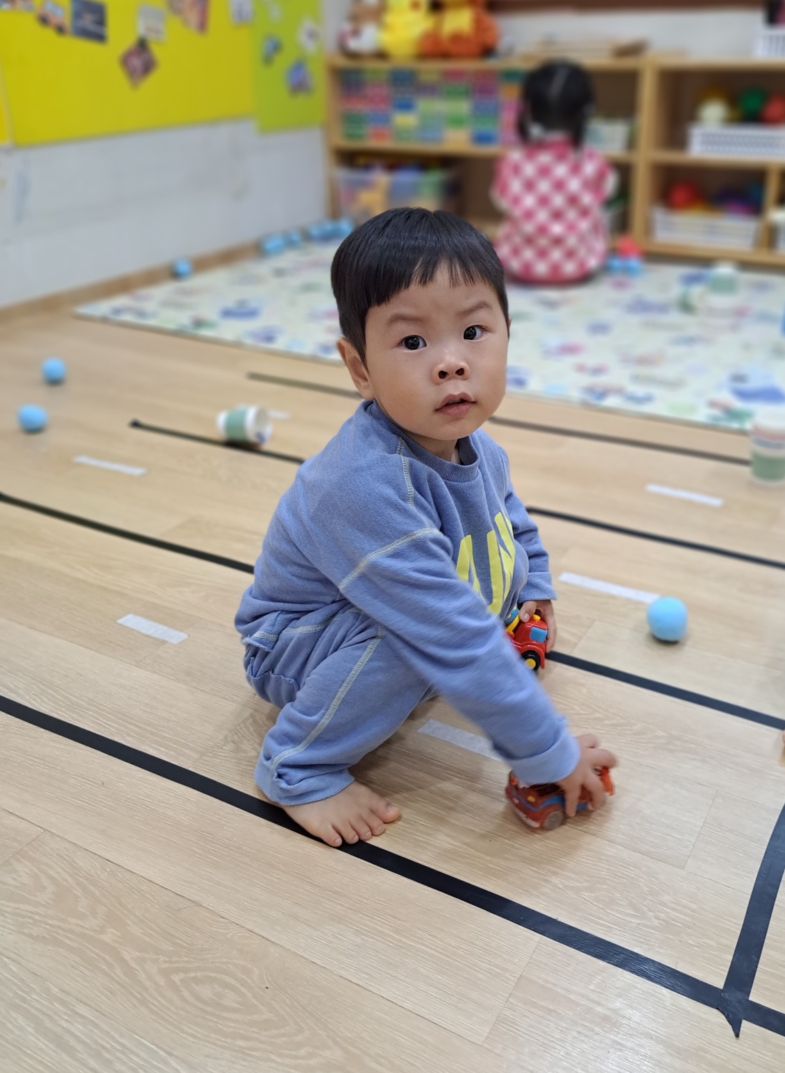 아침에 엄마랑 떨어지기 싫다고 울어서 아빠하고 엄마하고 어린이 집 모셔다 주고 왔더니..