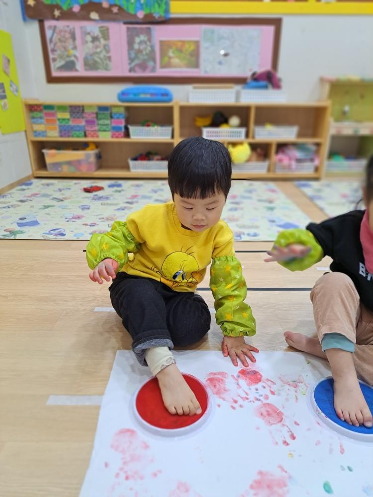 오늘 어린이 집에서 발도장 찍으며 놀았어.