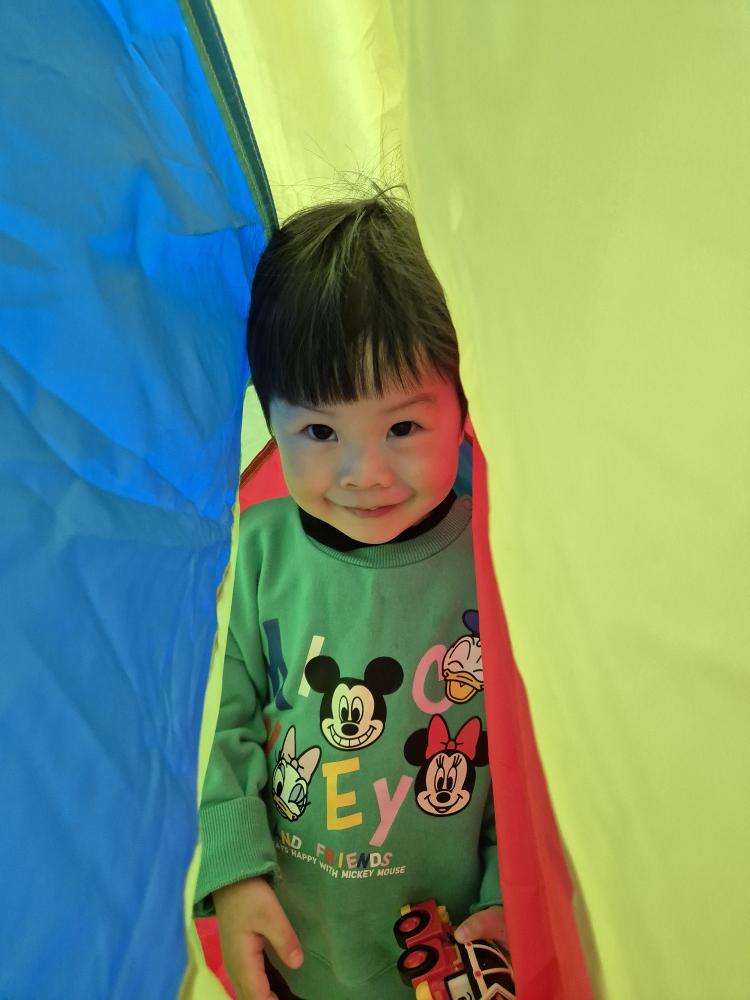 친구뜰이랑 같이 놀면서 슈트 안에 들어가 찾기 놀이도 하고 둘러 매고 놀기도 했어.