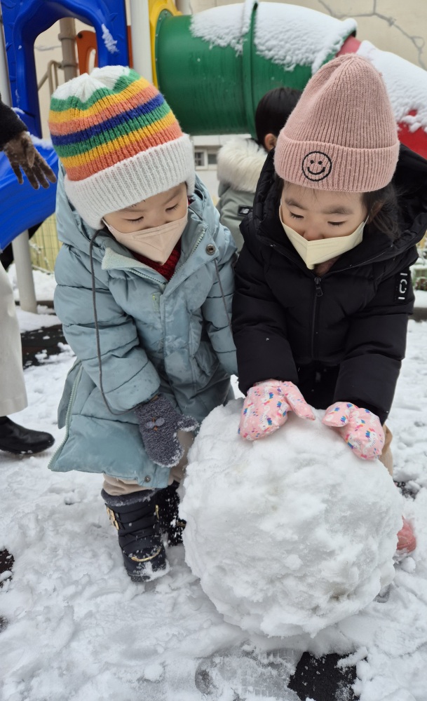 그리고 눈이 와서 어린이 딥 마당에 나가