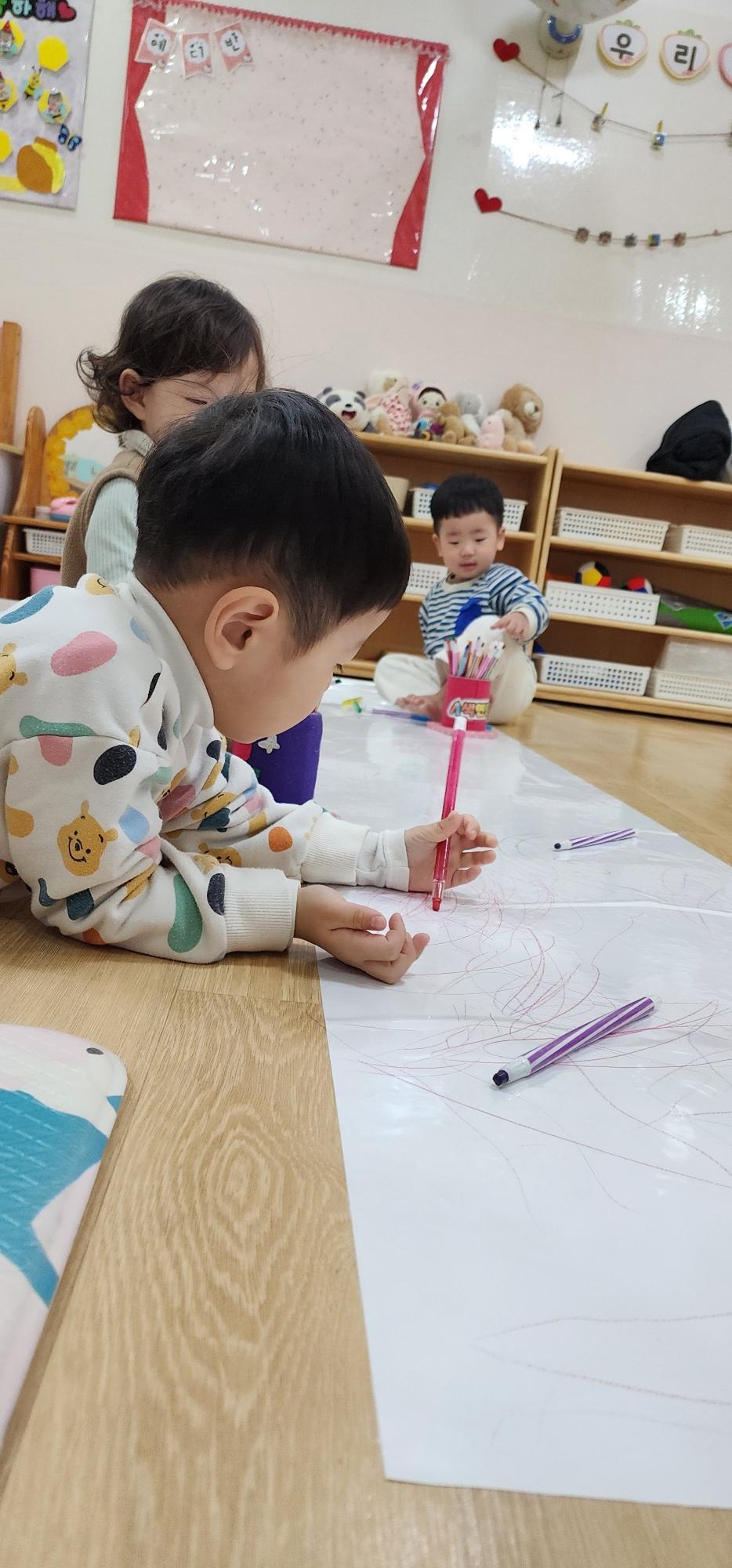 오늘은 어린이 집에서 낙서놀이를 했어.