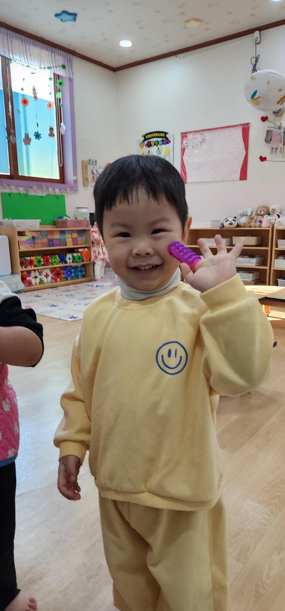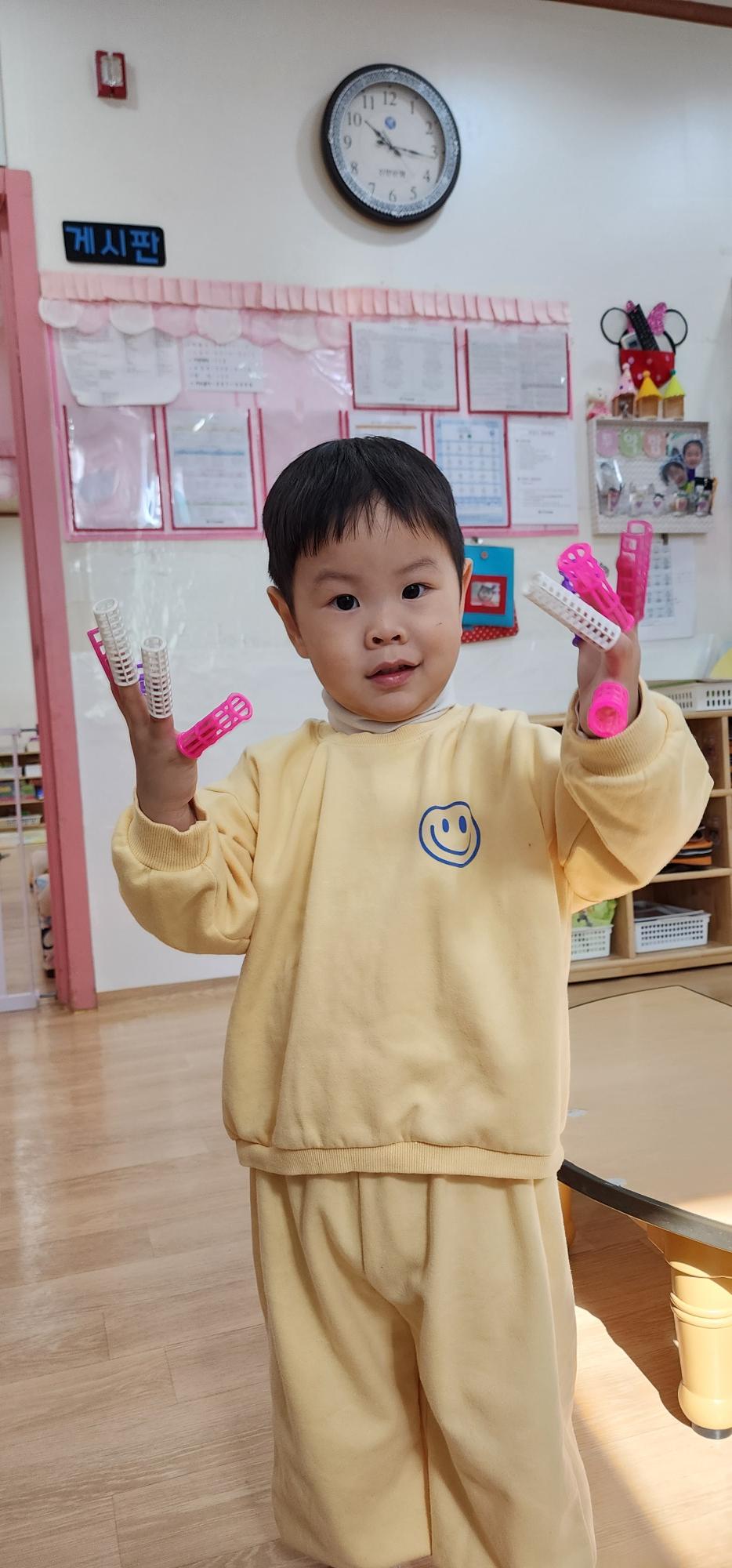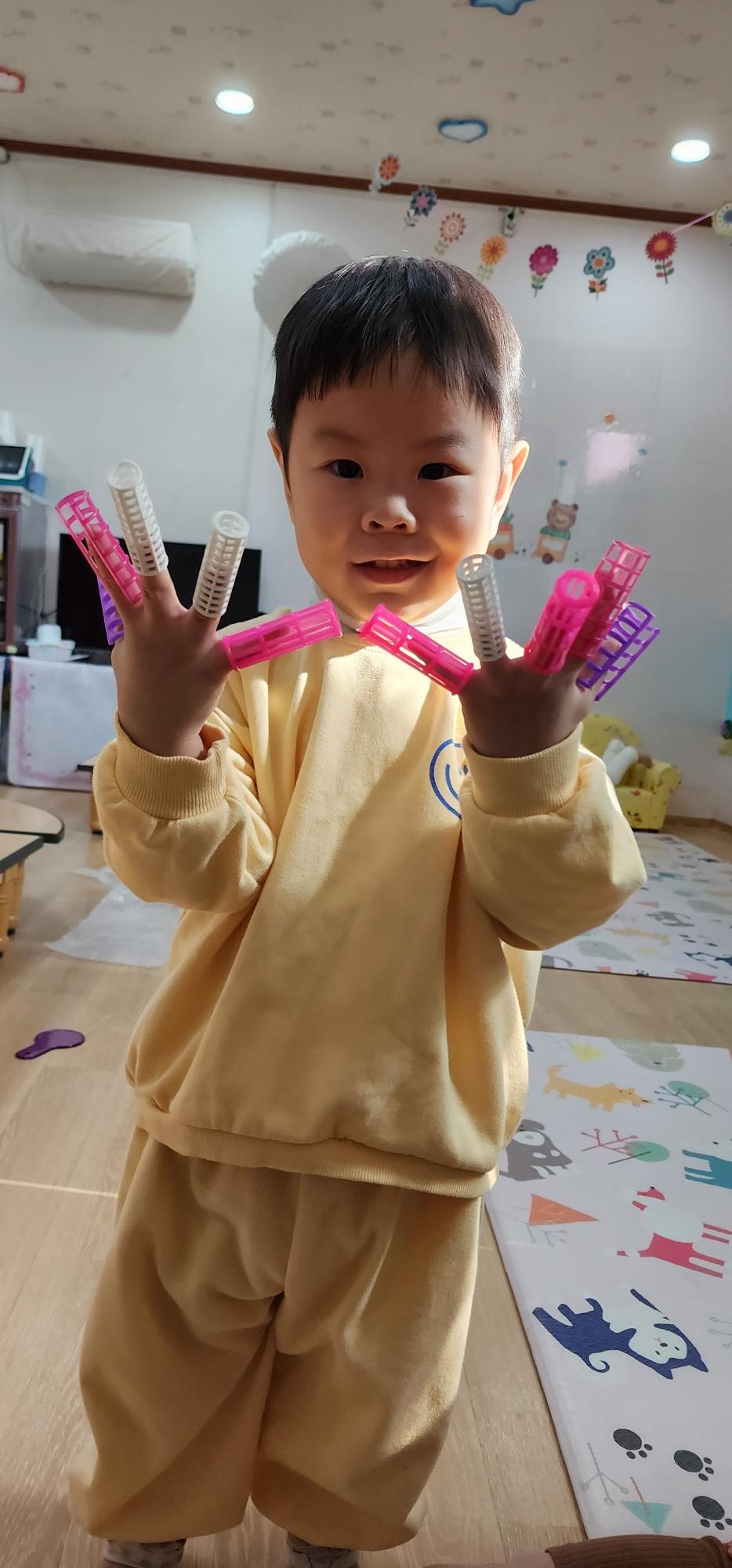 손가락에 끼고 재밌었나 봐 ㅎㅎ
