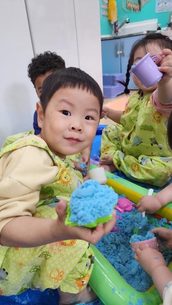 색깔이 예쁜 모래로 여러 가지 형태를 만들며 놀았어.
