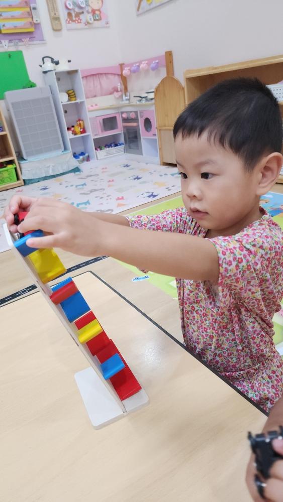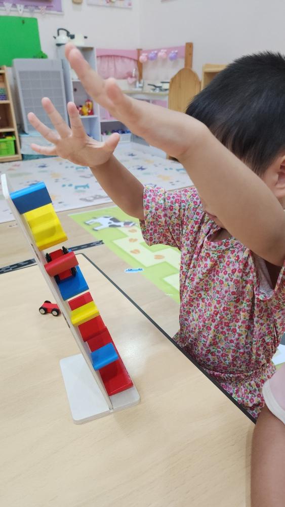 그리고 기차 모빌을 실에 끼워서 재밌게 놀았어.