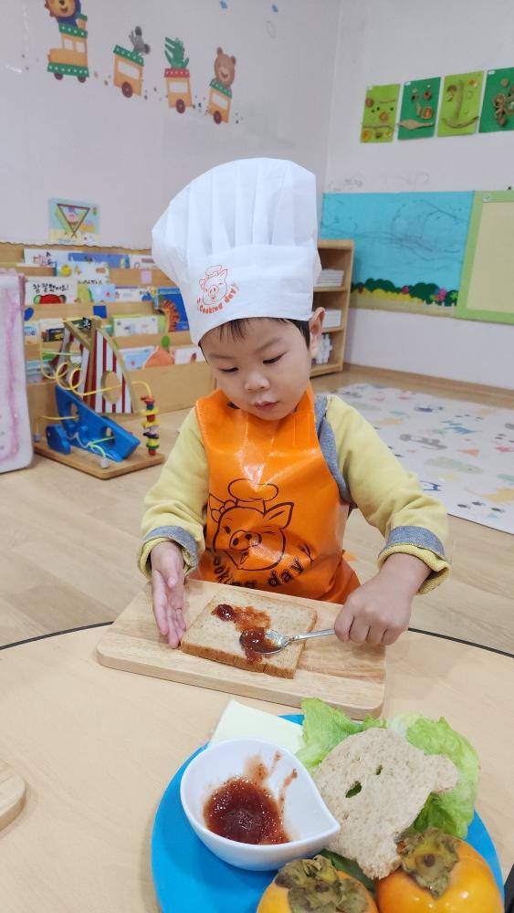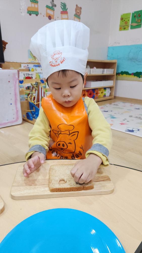 오늘 어린이 집에서 식빵으로 샌드위치 만들었어.