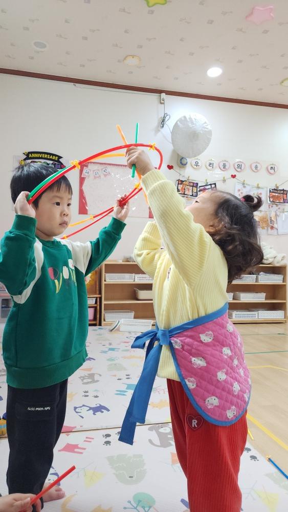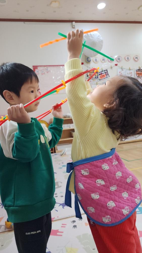 막대 블록 가지고 여러 가지 모양 만들어서 친구들과 나갔어.