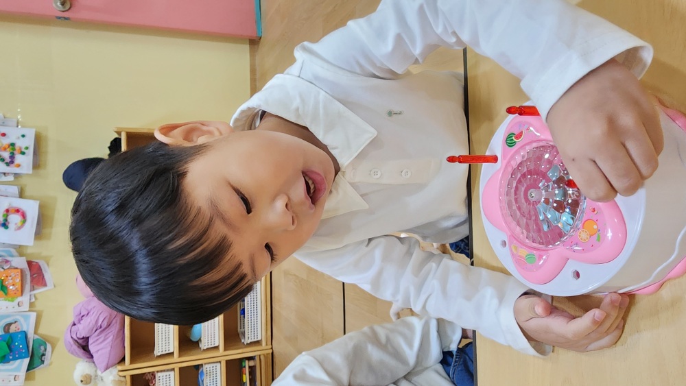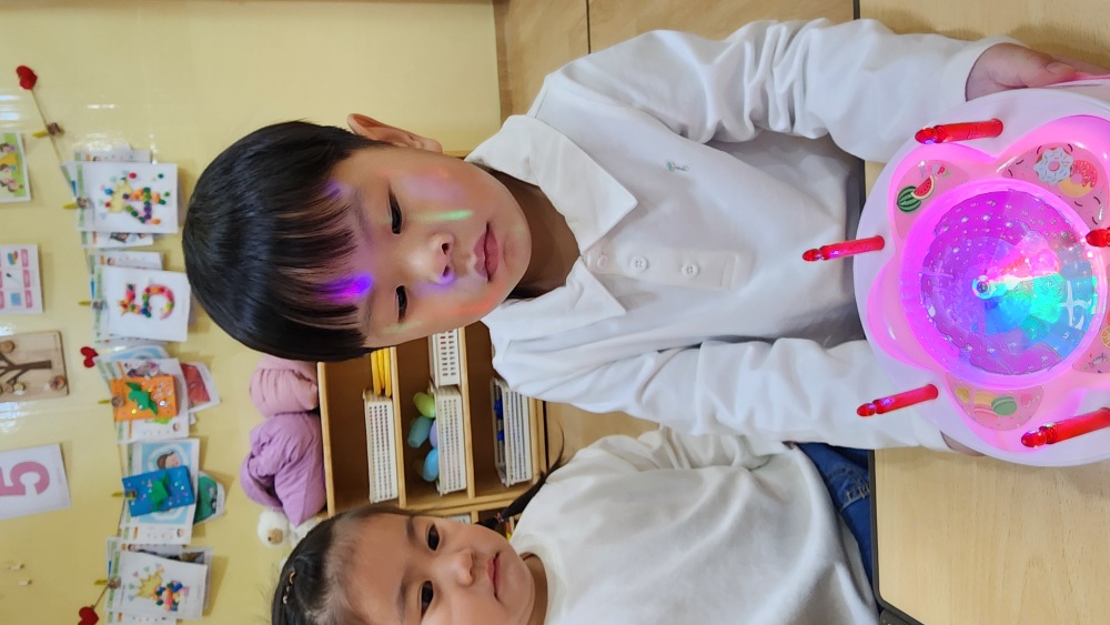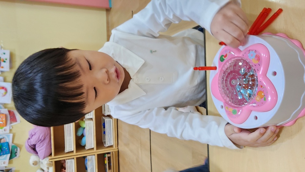 오늘 어린이 집에서 생일파티 놀이 했어.