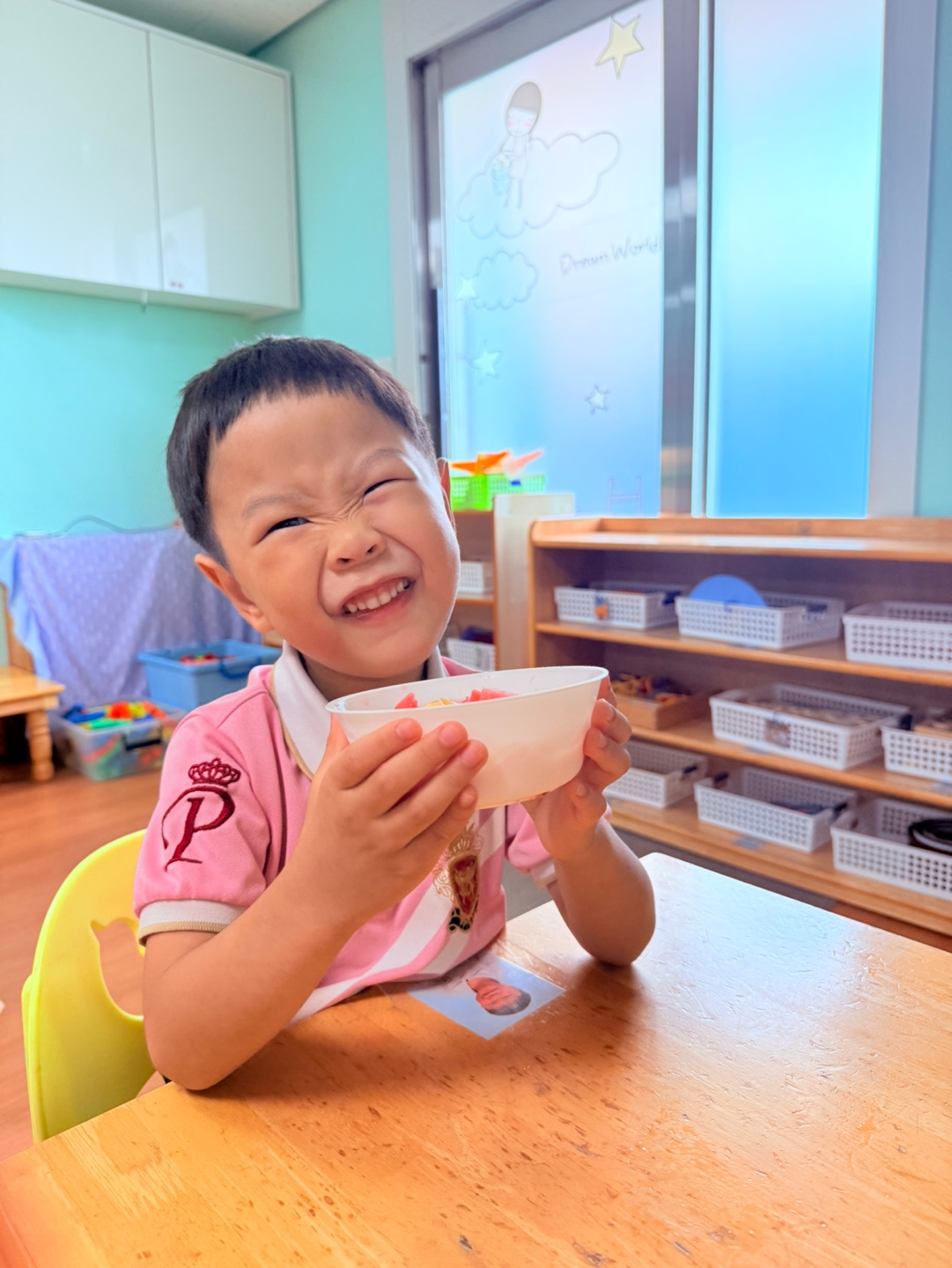오늘 유치원 안 가고 집에 있었어.