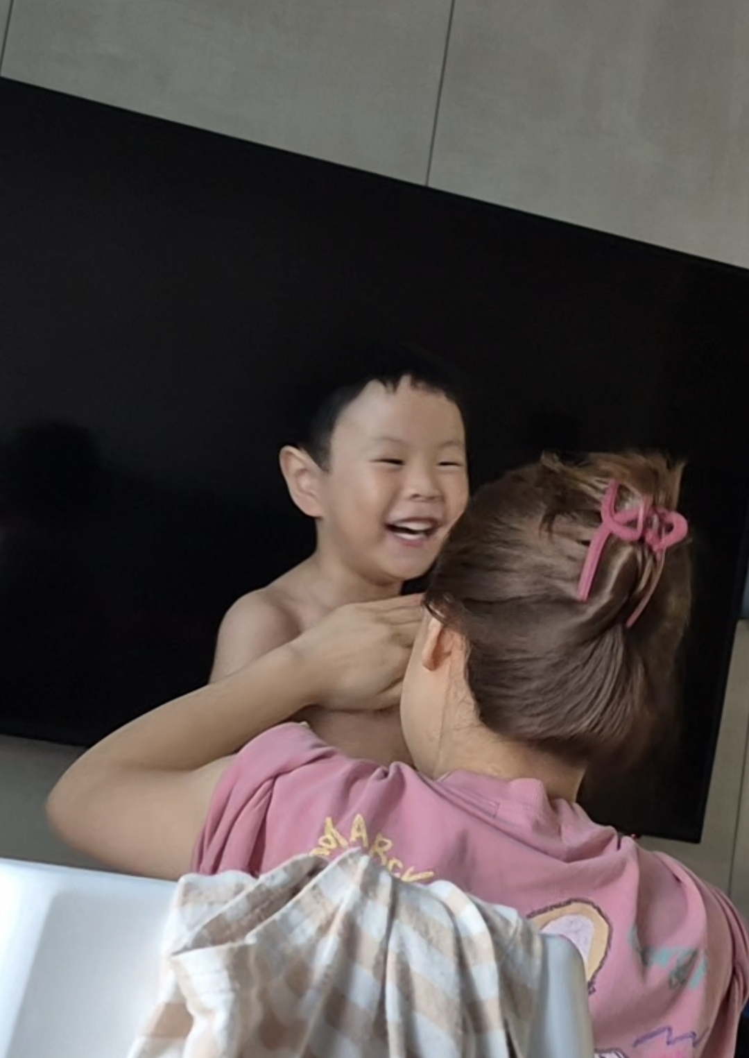 유치원 갔다 와서 목욕.