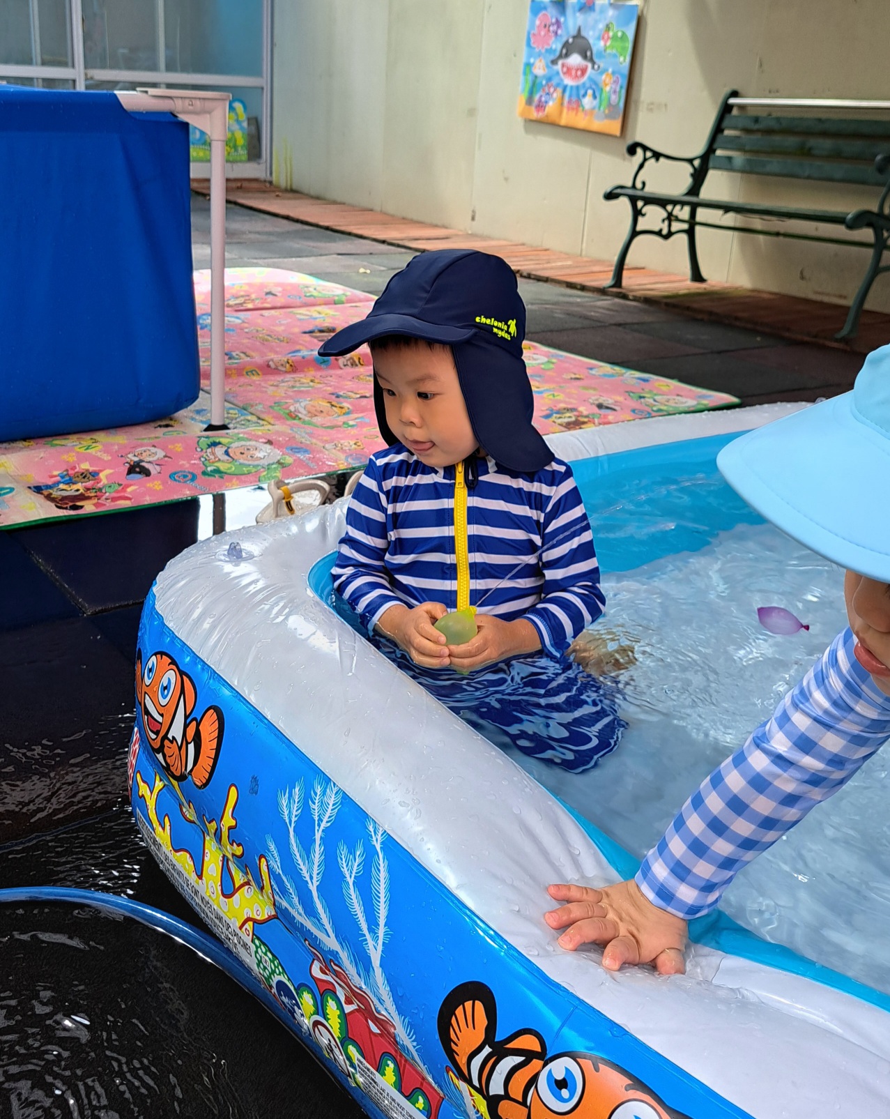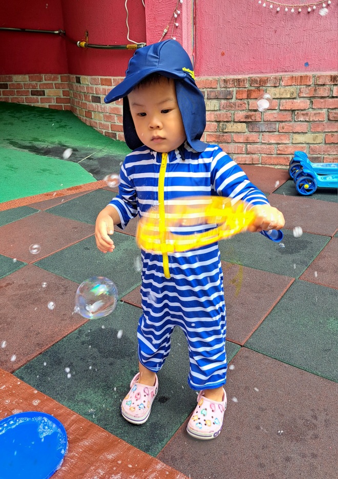오늘 어린이 집에서 수영복 입고 패션쇼 하고