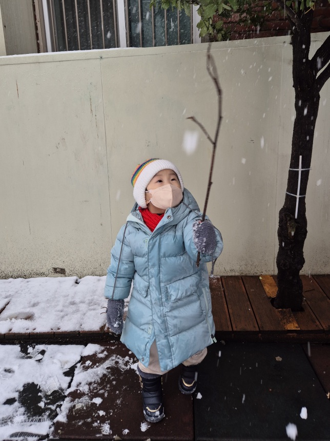 그리고 눈이 와서 어린이 딥 마당에 나가